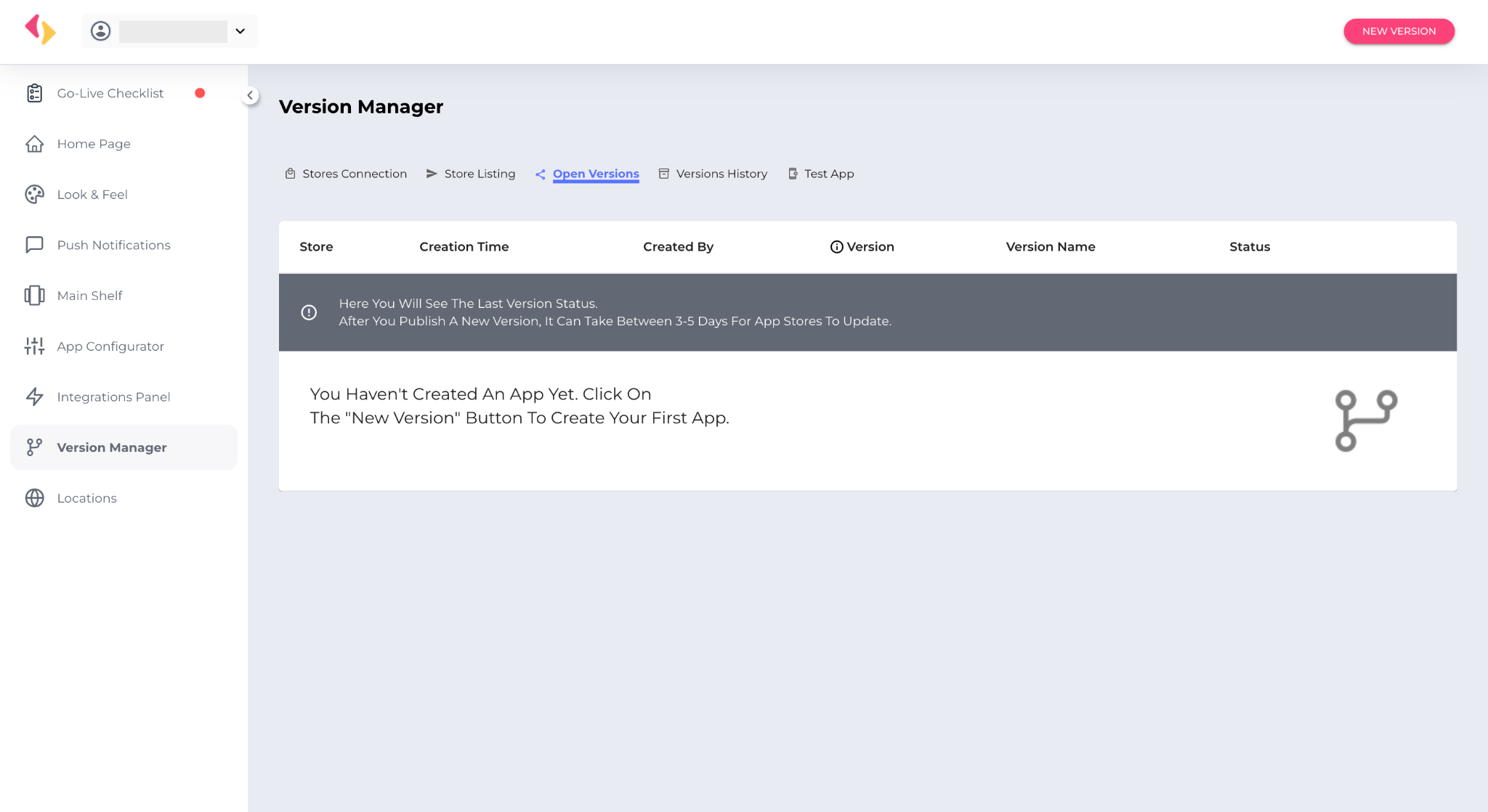Before you can create and release your new mobile app version, you must complete the five steps displayed in the image below.