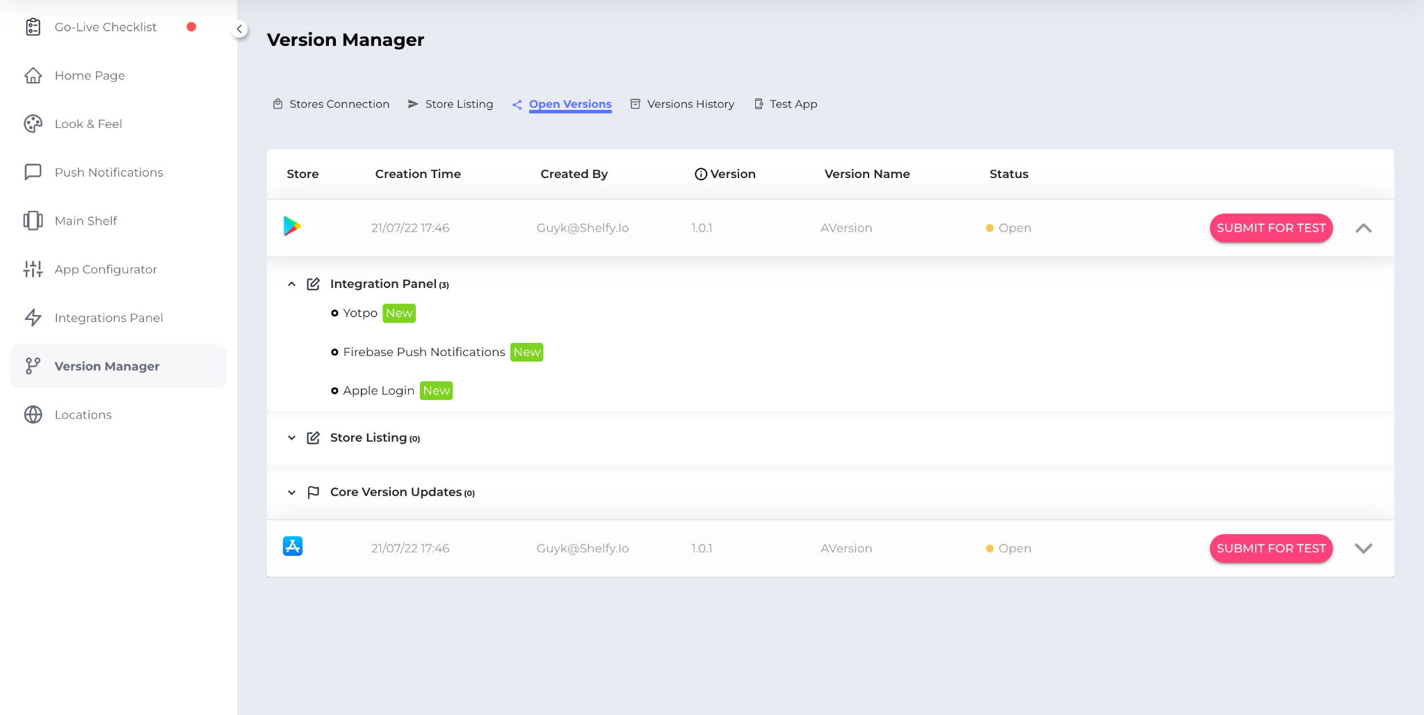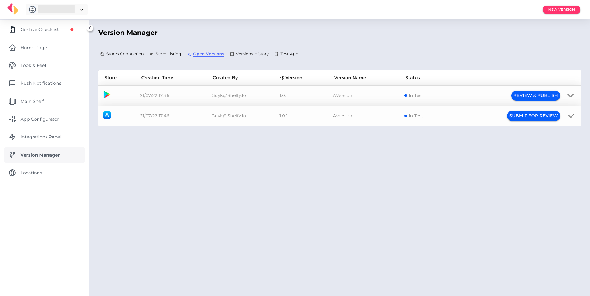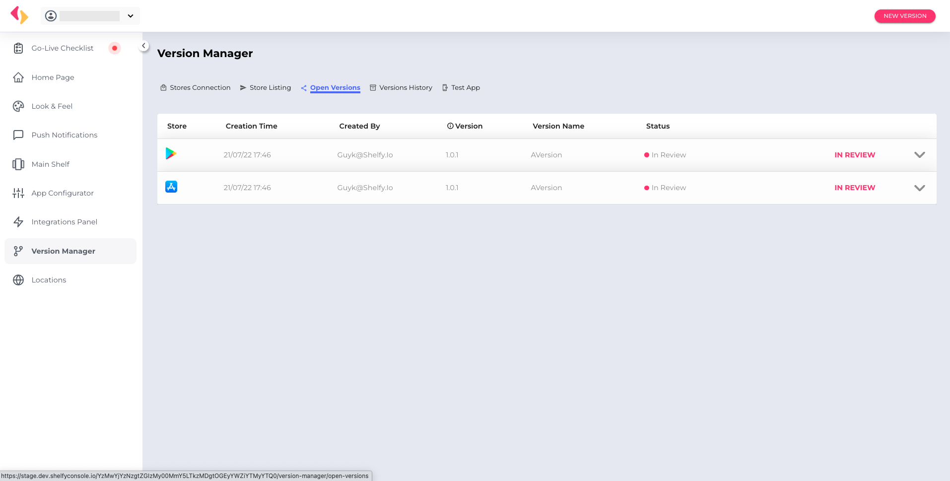 * Google Play: You must promote your first manual version before using shelfy.io version manager.